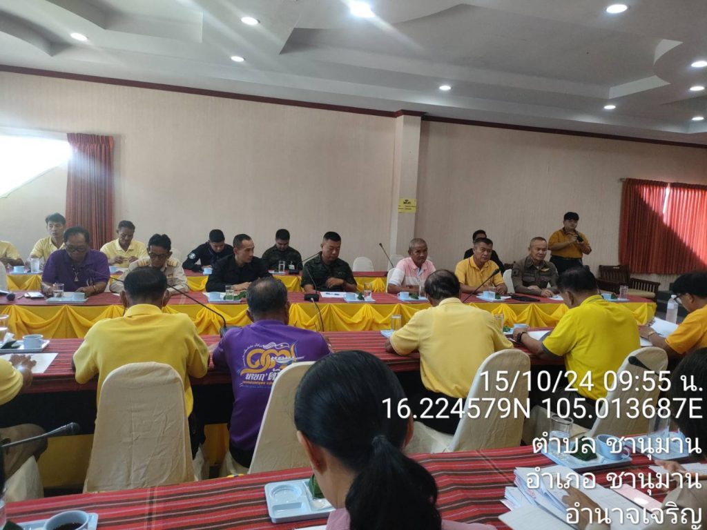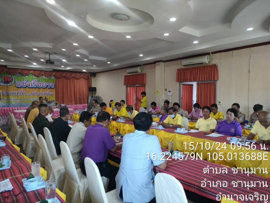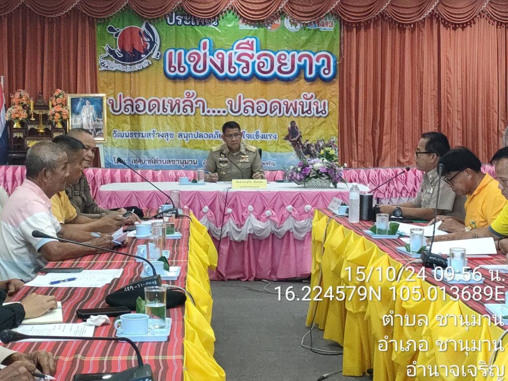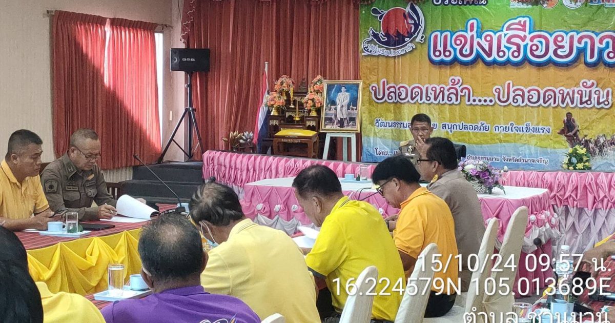สภ.ชานุมาน ภ.จว.อำนาจเจริญ วันที่ 15 ต.ค.67 เวลา 10.00 น. พันจ่าเอก สุวิน ห้องแซง นายอำเภอชานุมาน ประธาน พร้อมด้วย นาย ทศพล กระแสเสน นายกเทศบาลตำบลชานุมาน ซึ่งเป็นคณะกรรมกรรมตรวจสอบและติดตามการบริหารงานตำรวจ ของ สภ.ชานุมาน ได้ร่วมประชุมเตรียมความพร้อมในการจัดงานแข่งเรือยาวประเพณีชิงถ้วยพระราชทาน ฯ เทศบาลตำบลชานุมาน ประจำปี 2567 ระหว่างวันที่ 18 – 20 ต.ค. 67 โดย ผกก.สภ.ชานุมาน ได้มอบหมายให้ พ.ต.ท.นิติพงษ์ สีทาเลิศ รอง ผกก ป.สภ.ชานุมาน เข้าร่วมประชุม ร่วมกับ และหัวหน้าหน่วยงานที่เกี่ยวข้อง