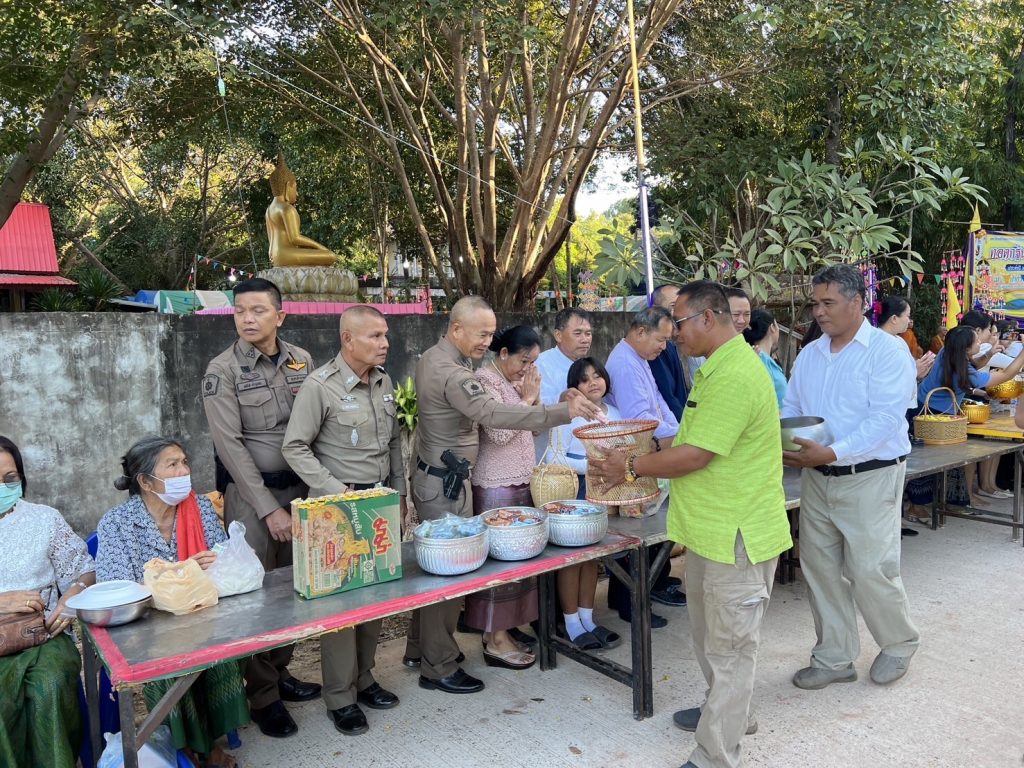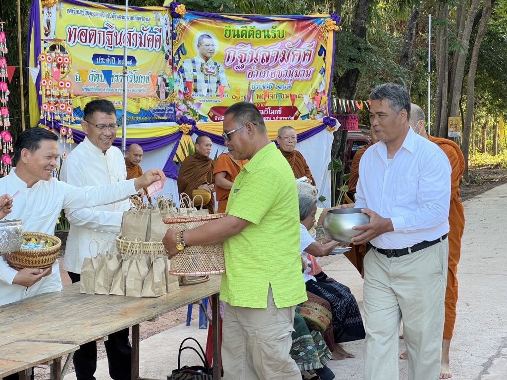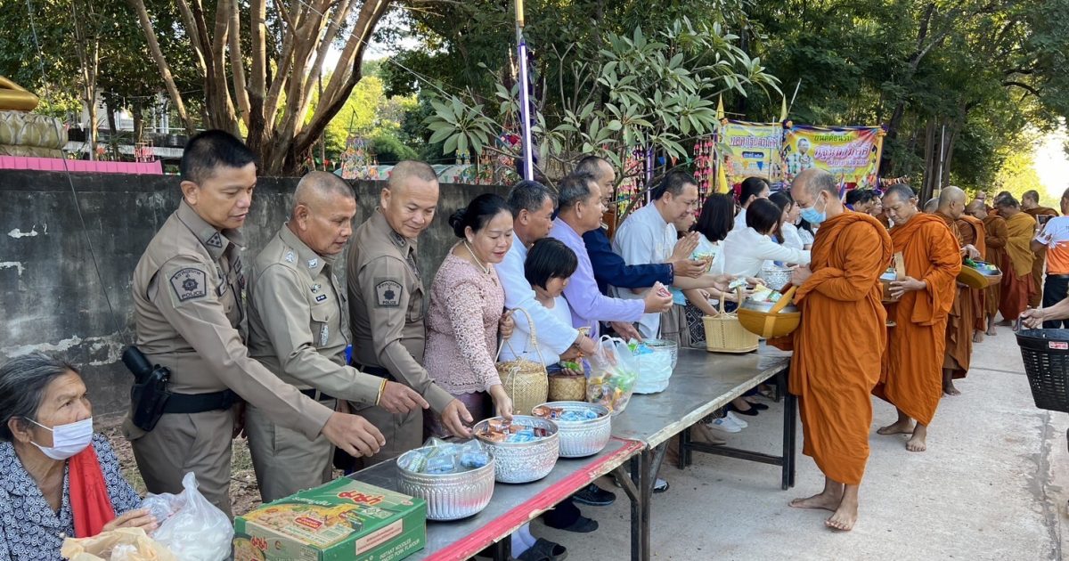 พ.ต.ต.สุวัจน์ เจริญท้าว สวป.(ชส.), ร.ต.อ.มนัส บำรุงศร รอง สว.(ป.)/ครูแดร์ พร้อมชุด ชมส.ร่วมกิจกรรมทำบุญตักบาตรถนนสายวัฒนธรรมและบุญกฐิน ณ วัดป่าธรรมวิโมกย์ บ้านพิทักษ์ไทย หมู่ 10 ต.ป่าก่อ อ.ชานุมาน จ.อำนาจเจริญ