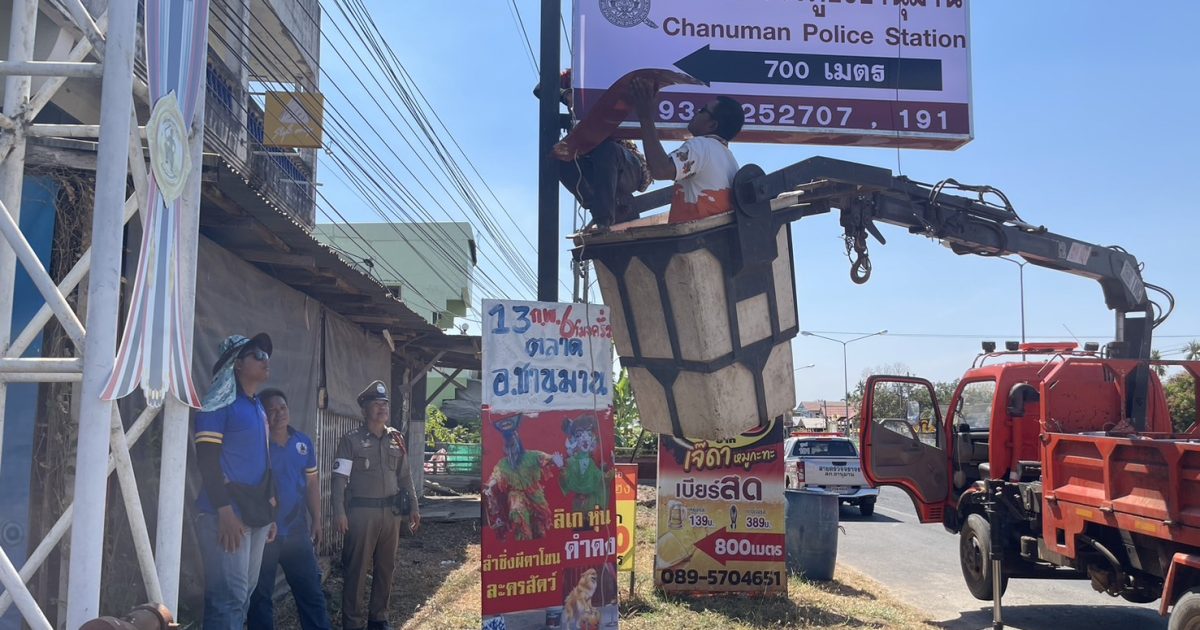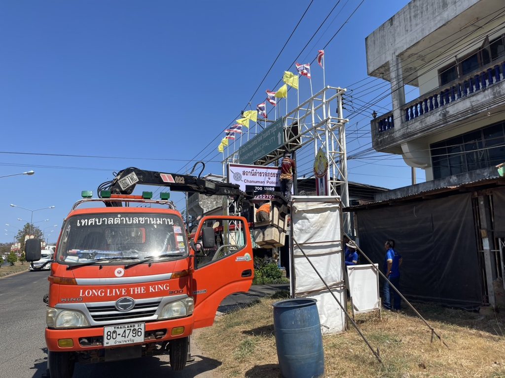 ร.ต.อ. สมชาย โสภาพงษ์ รอง สว.จร.สภ.ชานุมาน พร้อมด้วยชุดจราจร ได้ดำเนินการซ่อมแซมและติดตั้งป้ายสถานีตำรวจภูธรชานุมาน บริเวณทางลงสถานี เป็นที่เรียบร้อยแล้ว