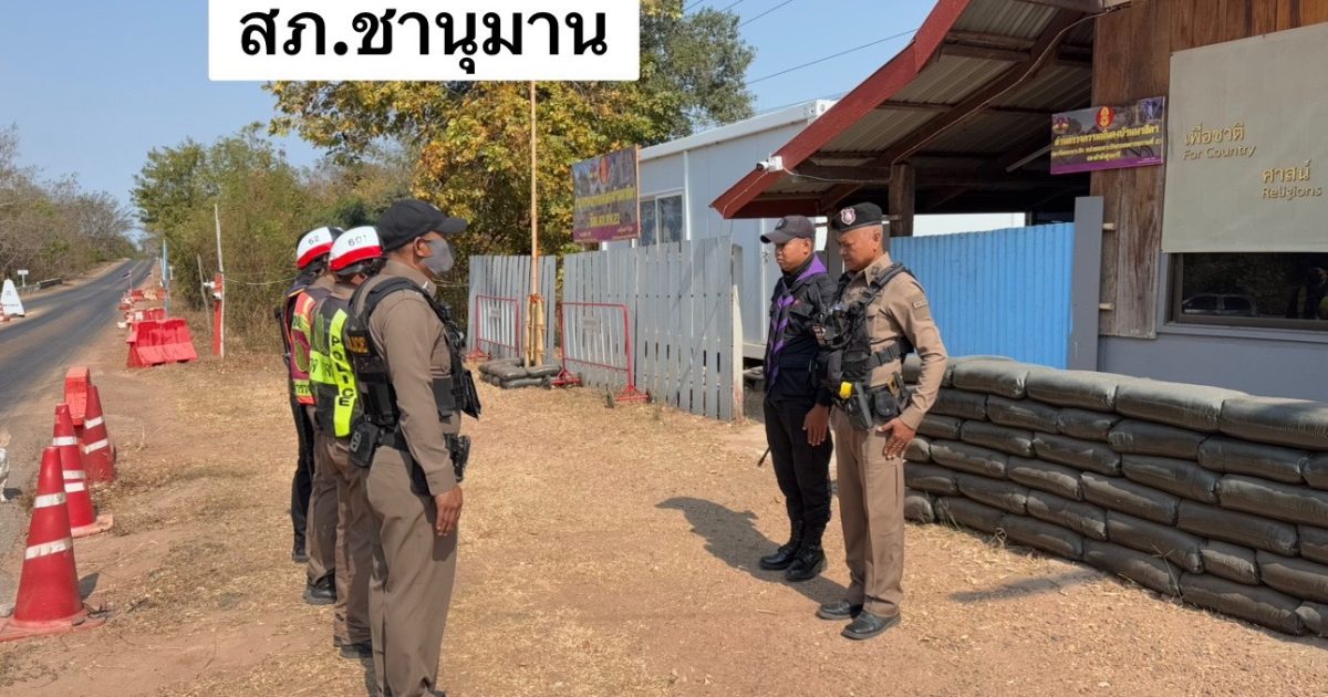 ร.ต.ท.เมืองมนต์ มาระแสง รอง สว(ป).สภ.ชานุมาน ปฏิบัติหน้าที่ร้อยเวร 2-0 / หน.ชุดปฏิบัติได้ตั้งจุดตรวจความมั่งคงบูรณาการร่วมหน่วยงานฝ่ายปกครอง ทหารพราน ตามแผนปฏิบัติการสกัดกั้นและปราบปรามยาเสพติด Seal Stop Safe เพื่อสกัดกั้นและปราบปรามยาเสพติดตามแนวชายแดนตามนโยบายเร่งด่วนของรัฐบาล