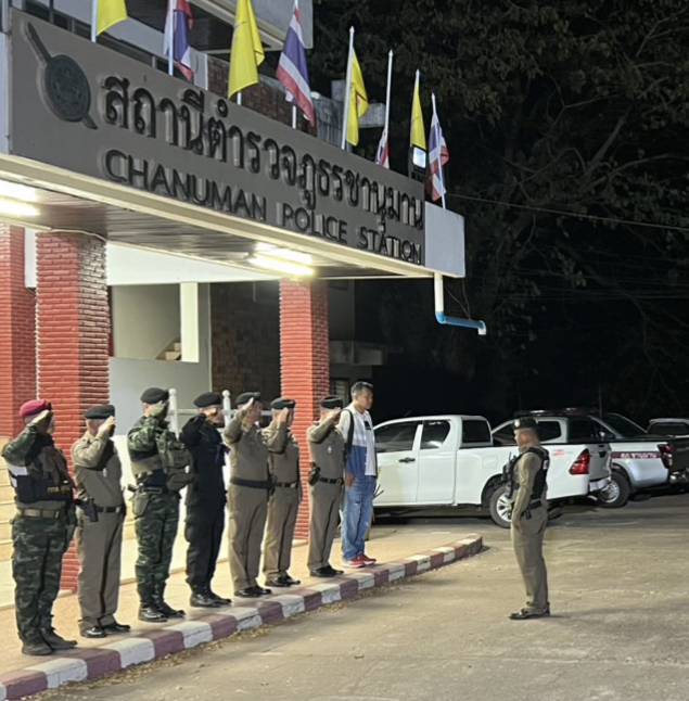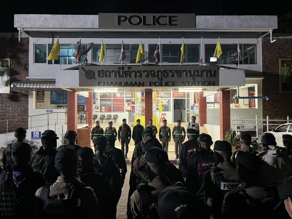 เป็นประธาน พร้อมด้วย พ.ต.ท.นิติพงษ์ สีทาเลิศ รอง ผกก.ป.ฯ , พ.ต.ท.ปุณยวีร์ ชินพา สวป.ฯ, พ.ต.ท.คมสันต์ คำวัน สว.สส.ฯ ร่วมปล่อยแถวเจ้าหน้าที่ตำรวจ สภ.ชานุมาน + จนท.ตชด.2273 + จนท.ทหารพราน ที่ 23 + เจ้าหน้าที่ฝ่ายปกครองอำเภอชานุมาน เพื่อร่วมกัน ทำการปิดล้อมตรวจค้นเครือข่ายยาเสพติด เหตุการณ์ทั่วไปปกติ
