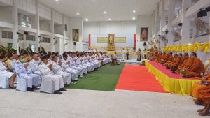 สภ.ชานุมาน ภ.จว.อำนาจเจริญ วันที่ 13 ต.ค.2567 เวลา 07.00 น. พันจ่าเอกสุวิน ห้องแซง นายอำเภอชานุมาน เป็นประธาน พันตำรวจเอกโชติ์นรินทร์ ศุภาวรัตม์ ผู้กำกับการสถานีตำรวจภูธรชานุมาน หัวหน้าส่วนราชการทุกส่วนราชการ หัวหน้าหน่วยงานรัฐวิสาหกิจทุกแห่ง ผู้อำนวยการโรงพยาบาลส่งเสริมสุขภาพตำบลอำเภอชานุมานทุกแห่ง ผู้อำนวยการโรงเรียนชานุมานวิทยาคม ผู้อำนวยการโรงเรียนอนุบาลชานุมาน ผู้อำนวยการโรงเรียนคำเขื่อนแก้ววิทยาคม ผู้อำนวยการโรงเรียนชุมชนโคกสารวิทยา ผู้อำนวยการโรงเรียนทุกแห่ง สมาชิกสภา อบจ.อำนาจเจริญ เขต 1, 2, 3 นายกเทศมนตรีตำบลทุกแห่ง นายกองค์การบริหารส่วนตำบลทุกแห่ง ผบ.มว.ตชด.2273 นายทหารยุทธการ กกล.สุรนารี หัวหน้าชุดพัฒนาสัมพันธ์มวลชล 2201 ผบ.ร้อย.ฉก.ทพ.23 ประธานสภาวัฒนธรรมอำเภอชานุมาน กำนันทุกตำบล และผู้ใหญ่บ้านทุกหมู่บ้าน ร่วมกิจกรรมเนื่องในวันนวมินทรมหาราช พิธีทำบุญตักบาตรถวายเป็นพระราชกุศล และพิธีวางพวงมาลาและถวายราชสดุดี เพื่อเป็นการแสดงออกถึงความจงรักภักดีและสำนึกในพระมหากรุณาธิคุณ ณ หอประชุมอำเภอชานุมาน จังหวัดอำนาจเจริญ