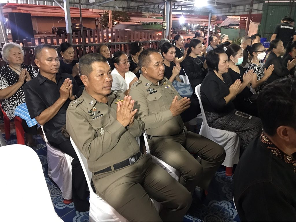 พร้อมด้วยแม่บ้านตำรวจ สภ.ชานุมานร่วมสวดอภิธรรมศพคุณพ่อพิมพ์ การสะอาด สิริอายุ 93 ปี บิดาของ ร.ต.อ.โยธิน การสะอาด รอง สว.(ป.) สภ.ชานุมาน ณ บ้านเลขที่ 99 ม.2 ต.นาจารย์ อ.เมือง จ.กาฬสินธุ์ พร้อมมอบเงินสวัสดิการ สภ.ชานุมาน