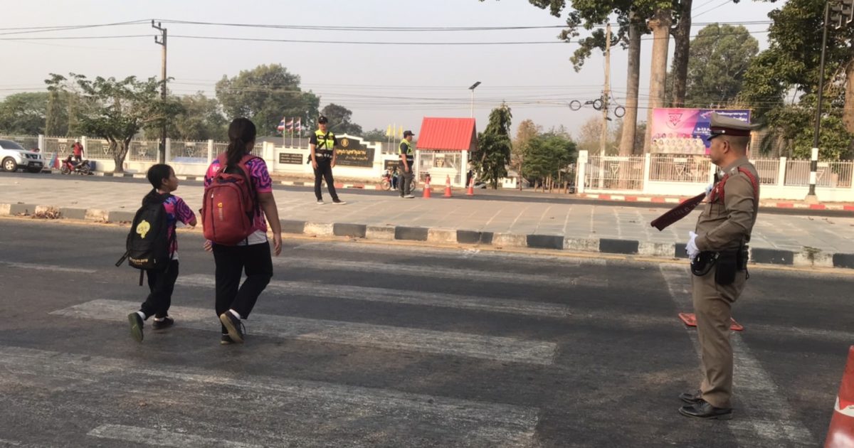 อำนวยความสะดวกด้านการจราจร หน้าโรงเรียนอนุบาลชานุมาน และ โรงเรียนชานุมานวิทยาคม