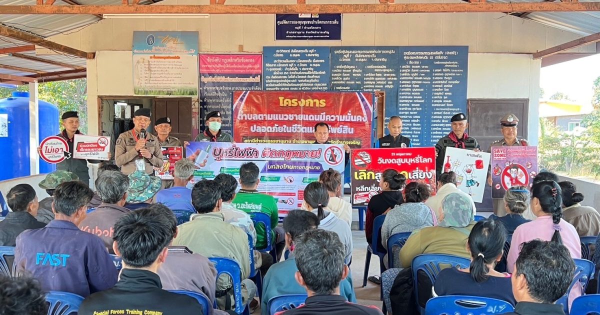 สภ.ชานุมาน ภ.จว.อำนาจเจริญ วันนี้ 16 ม.ค.2568 เวลา 08.30 น. พ.ต.อ.โชติ์นรินทร์ ศุภาวรัตม์ ผกก.สภ.ชานุมาน พ.ต.ท.นิติพงษ์ สีทาเลิศ รอง ผกก.ป.,มอบหมายให้ พ.ต.ต.สุวัจน์ เจริญท้าว สวป.(ชส.),ร.ต.อ.สมชาย โสภาพงษ์ รอง สว.จร.,ร.ต.อ.มนัส บำรุงศร รอง สว.(ป.)/ครูแดร์,ชุด ชมส.,ชุดปฏิบัติการชุมชนยั่งยืนฯพร้อมด้วย ร.ต.ต.สมศักดิ์ ดอกพุฒ รอง ผบ.หมวด ตชด.2273,ร.ต.ศรีศักดิ์ อุ่นแดง หน.ชุด ชพส.2201,นายโกวิน บุญชิต ผญบ.โคกนกกระเต็น พร้อมชาวบ้านชุมชนโคกนกกระเต็น หมู่7/หมู่บ้าน ชมส./หมู่บ้านตามโครงการชุมชนยั่งยืนฯ ร่วมประชุมเชิงปฏิบัติการ ตามโครงการตำบลตามแนวชายแดนมีความมั่นคงปลอดภัยในชีวิตและทรัพย์สิน เพื่อกำหนดกติกาหรือธรรมนูญชุมชน/หมู่บ้านในการป้องกันอาชญากรรมในพื้นที่ฯ ณ ศาลาประชาคมบ้านโคกนกกระเต็น หมู่ 7 ต.โคกสาร อ.ชานุมาน จ.อำนาจเจริญ