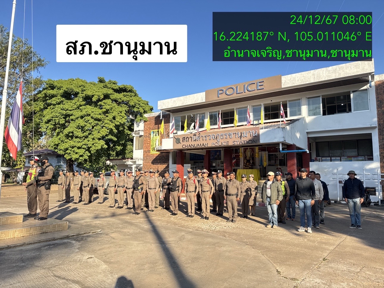 ภ.ชานุมาน ภ.จว.อำนาจเจริญ วันนี้ ( 24 ธ.ค. 67) เวลา 08.00 น. พ.ต.อ.โชติ์นรินทร์ ศุภาวรัตม์ ผกก.สภ.ชา