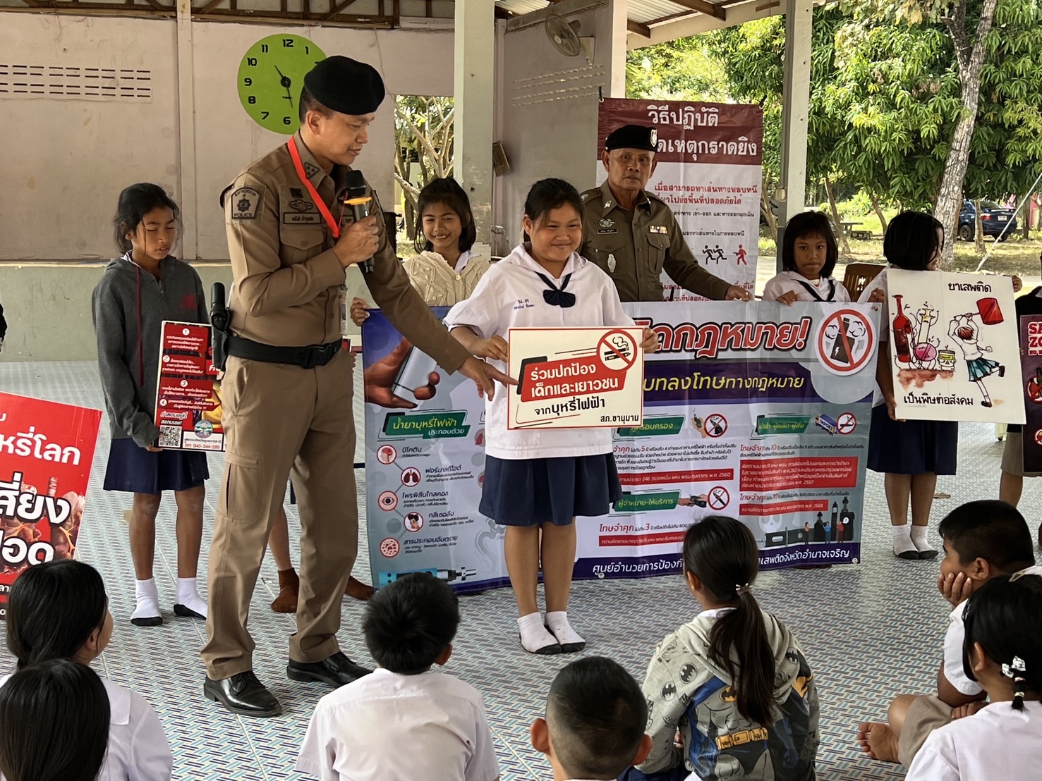 บรรยายให้ความรู้หน้าเสาธง เพื่อป้องกันแก้ไขปัญหายาเสพติด บุหรี่