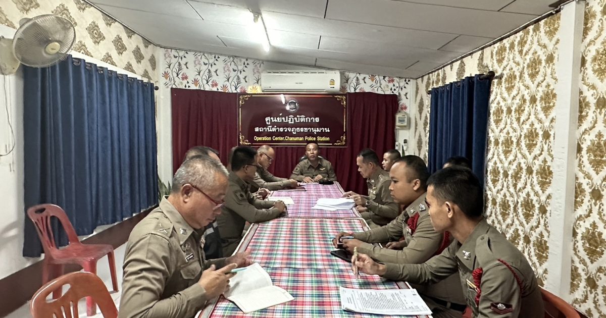 พ.ต.อ.โชติ์นรินทร์ ศุภาวรัตม์ ผกก.สภ.ชานุมาน, พ.ต.ท.อำนาจ ปาเส รอง ผกก.(สอบสวน) สภ.ชานุมาน, พงส.ฯ, ประจำวัน,พลขับงานสอบสวนและเจ้าหน้าที่คดีทุกนาย ได้ร่วมประชุมงานสอบสวนเพื่อเร่งรัดติดตามการดำเนินการด้านการทำสำนวนและเร่งรัดการดำเนินคดีเพื่อส่งฟ้องต่อ สำนักงานอัยการ ณ ห้องรับรอง สภ.ชานุมาน