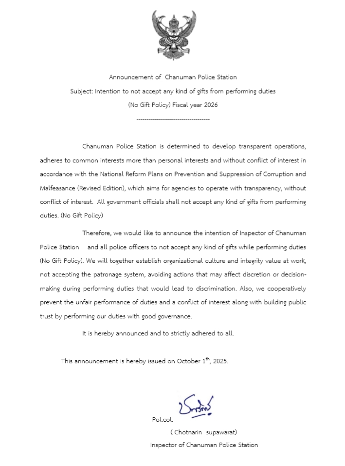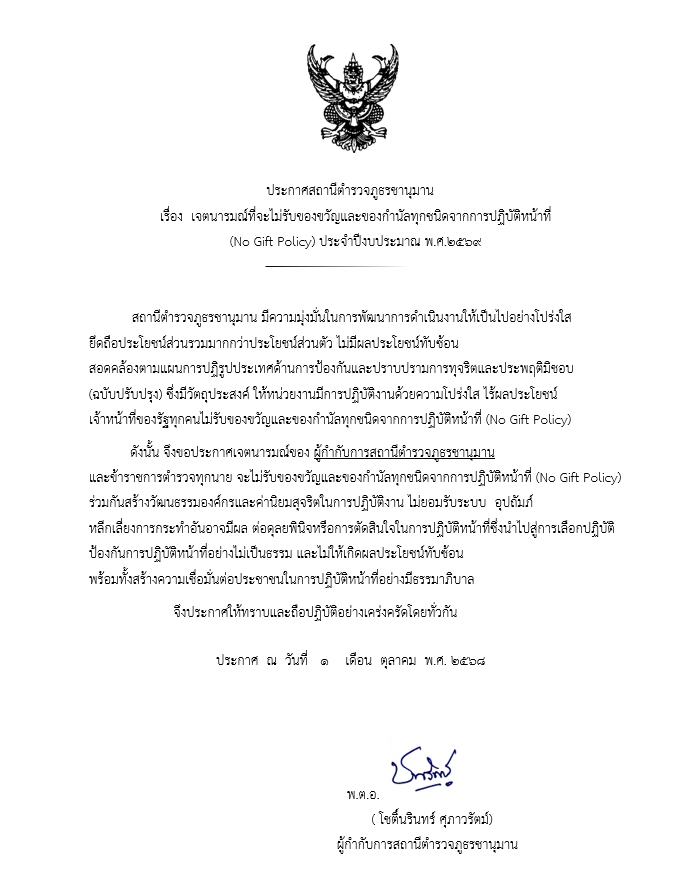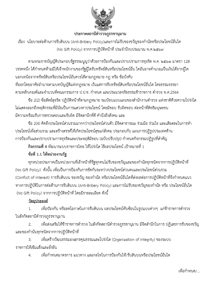 และของกำนัลทุกชนิดจากการปฏิบัติหน้าที่ (No Gift Policy)