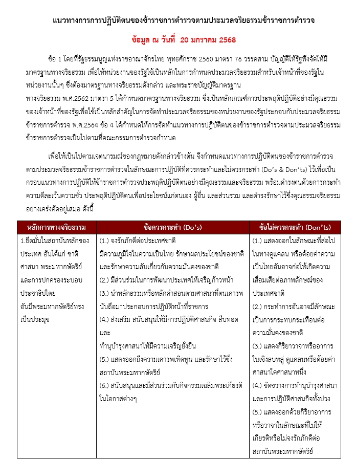 แนวทางปฏิบัติตนของข้าราชการตำรวจตามประมวลจริยธรรมข้าราชการตำรวจ พ.ศ.2566 ​