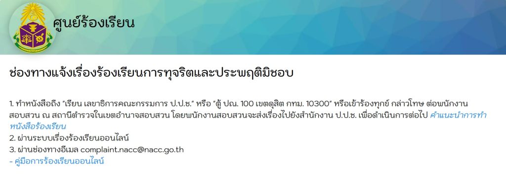 ช่องทางการแจ้งเรื่องร้องเรียนการทุจริต