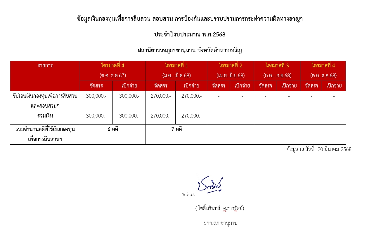 O13 ข้อมูลเงินกองทุนเพื่อการสืบสวน สอบสวนการป้องกันและปราบปรามการกระทำผิดทางญา